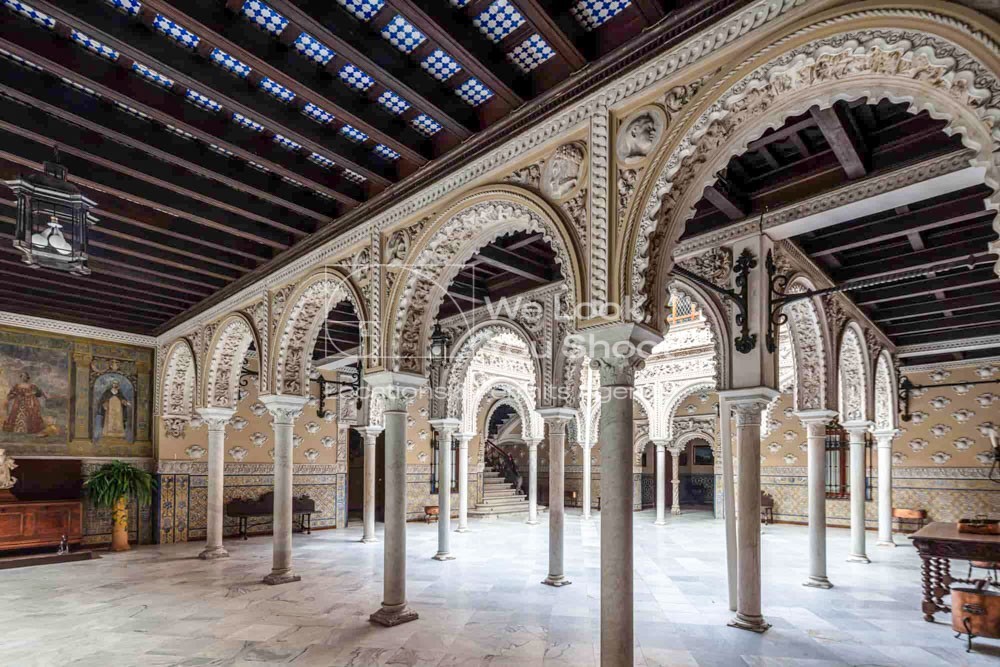 Un edificio de majestuosa arquitectura del siglo XIX que fusiona patios luminosos, azulejos vidriados y forja artística con un ambiente señorial. Su vínculo histórico con el mundo ecuestre y la tradición andaluza se refleja en cada rincón, creando una atmósfera única
