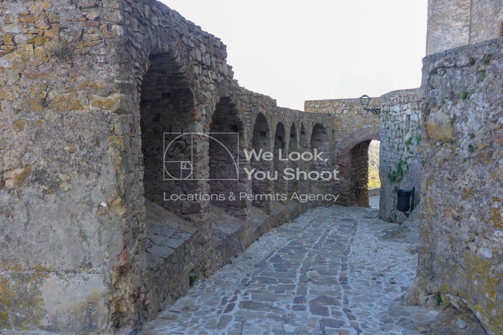 UNA VILLA AMURALLADA INTACTA SITUADA EN LA CIMA DE UN RISCO, RODEADA DE ESPESOS BOSQUES DE ALCORNOQUES Y CON VISTAS A UNA GRAN LÁMINA DE AGUA. CALLES DE PIEDRA IRREGULAR, FACHADAS CON BUGANVILLAS Y UNA ARQUITECTURA DEFENSIVA QUE PROPORCIONA UN AIRE DE CUENTO GÓTICO O MEDIEVAL ATEMPORAL