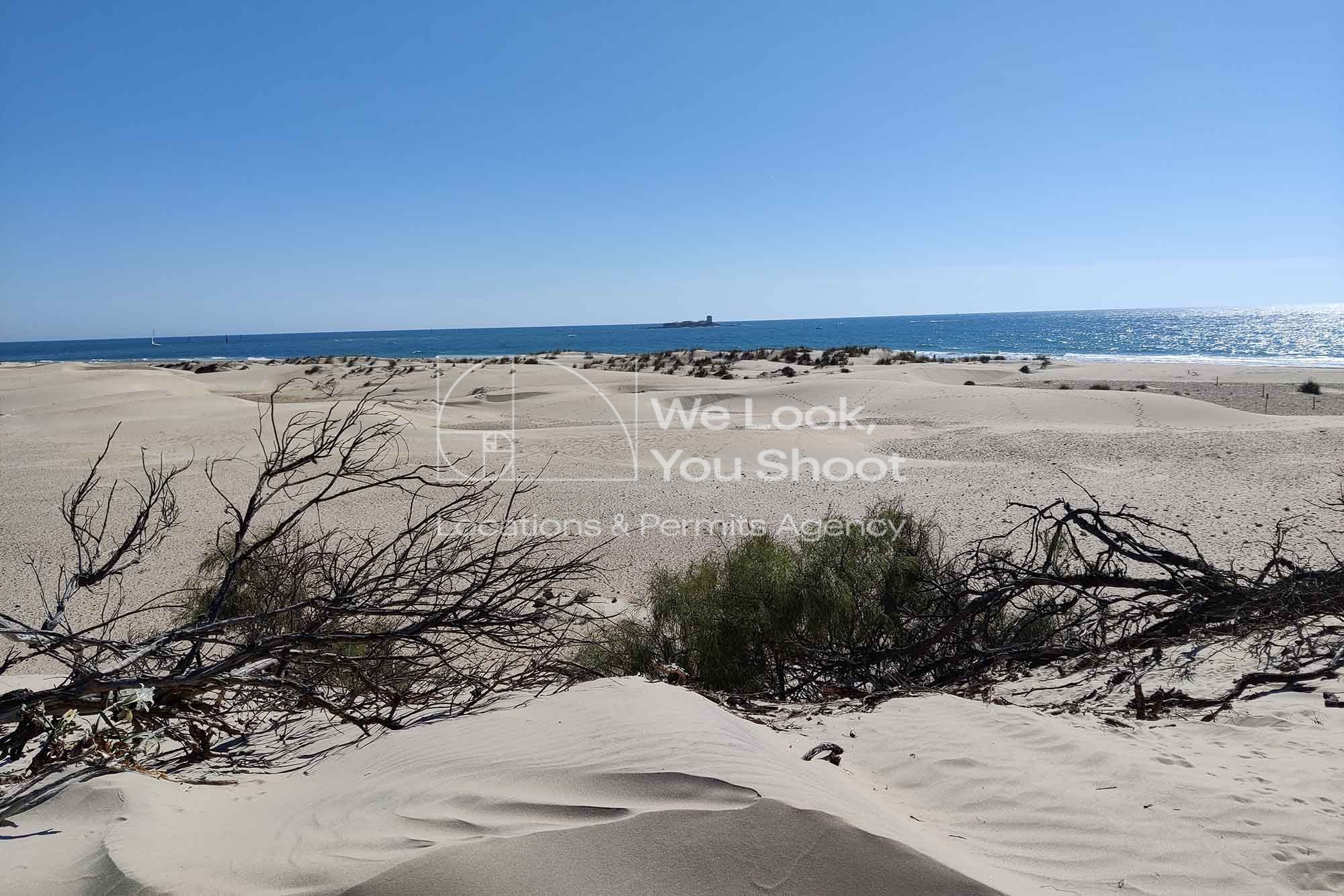 UNA EXTENSA LENGUA DE ARENA FINA Y SISTEMAS DUNARES SALVAJES QUE CONVERGEN EN UN ENTORNO DE MARISMAS Y CAÑOS, CONECTADOS POR PASARELAS DE MADERA INTEGRADAS EN EL PAISAJE. EL RECORRIDO CULMINA EN IMPONENTES MUROS DE PIEDRA OSTIONERA Y RESTOS DE ANTIGUAS BATERÍAS MILITARES, OFRECIENDO UNA TEXTURA VISUAL ÚNICA ENTRE LA VEGETACIÓN AUTÓCTONA Y EL HORIZONTE MARINO